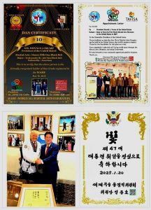 Q. 명예 10단 단증은 누가 받을 수 있나요?<br />A. 무술 발전과 세계 평화에 기여한 세계적 지도자 및 저명 인사에게 수여됩니다. (예: 트럼프 전 미국 대통령) 또한, 각 무술 종목별, 전문가(관장, 사범 등)와 일반 수련자를 위해 단증 발급 등을 통해 조직구성을 추진하고 있습니다.