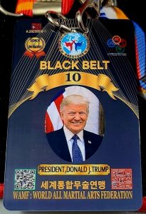 트럼프, 2027 미국 제1회 세계 무술 올림픽 명예위원장 수락 트럼프 미 대통령 명예 10단 단증 수여